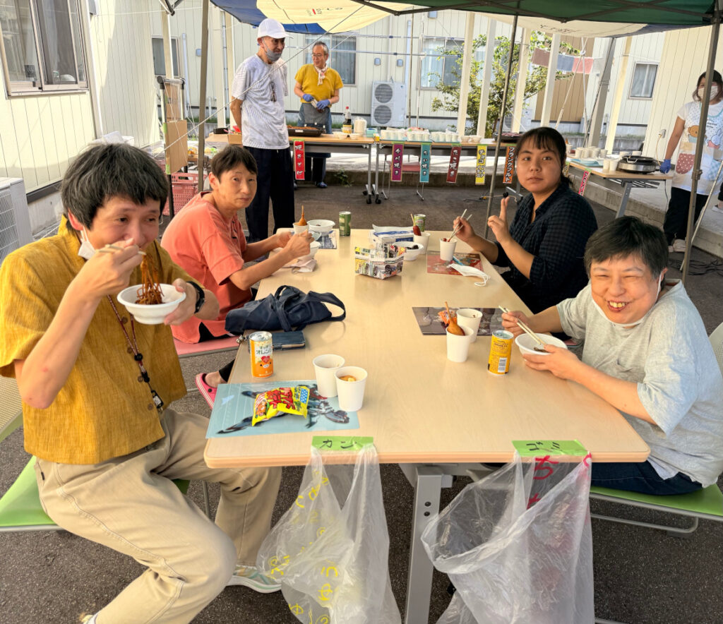 普段なかなかお祭りに行く機会がない利用者様達に、少しでも雰囲気を味わっていただこうと、グループホームのちょっとした空スペースで縁日を開催しました。