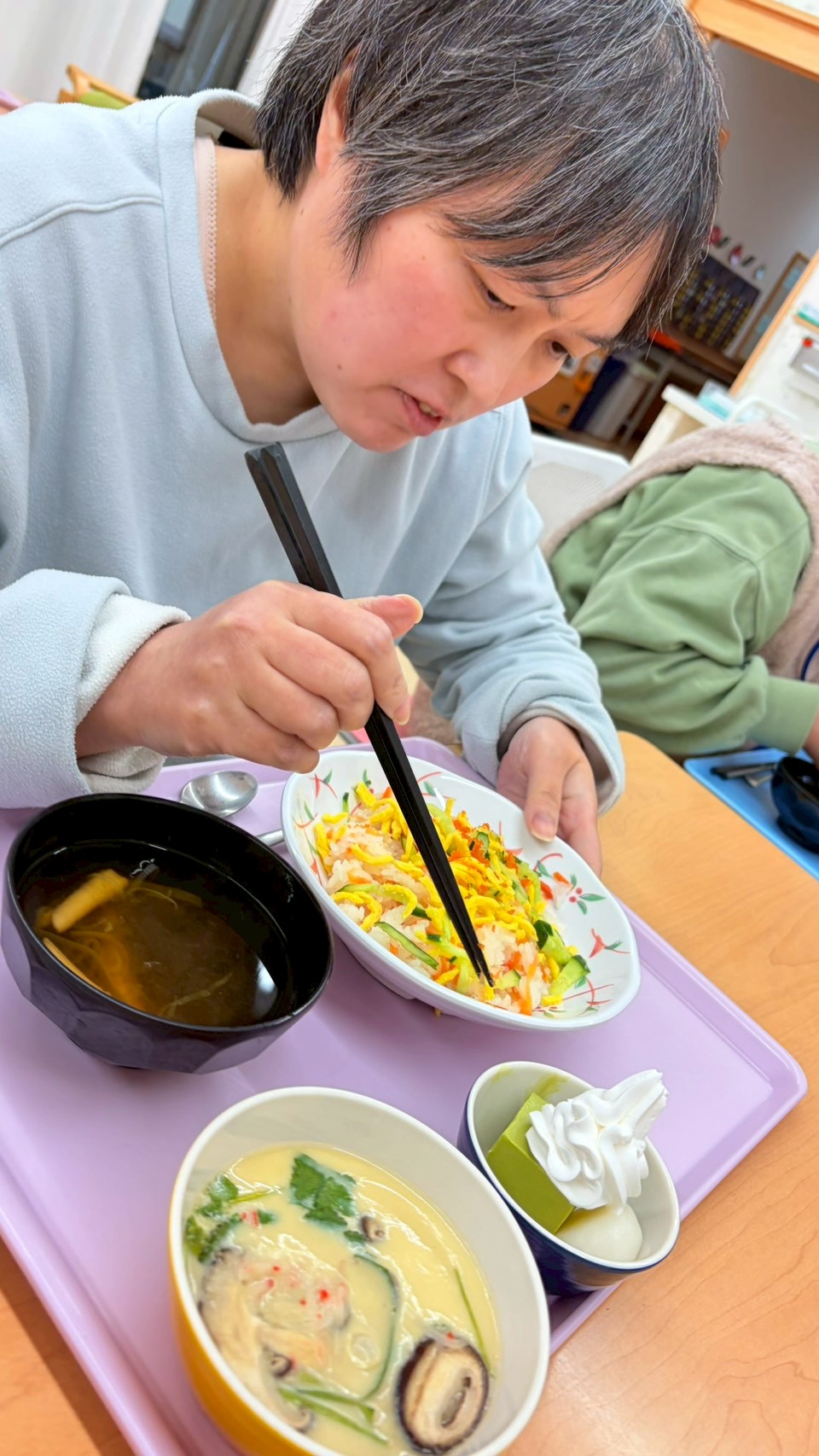 <ひな祭りメニュー>『お待ちかねの給食の時間は一番の笑顔だね~😊』