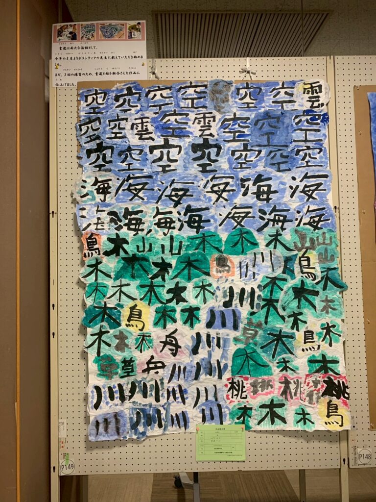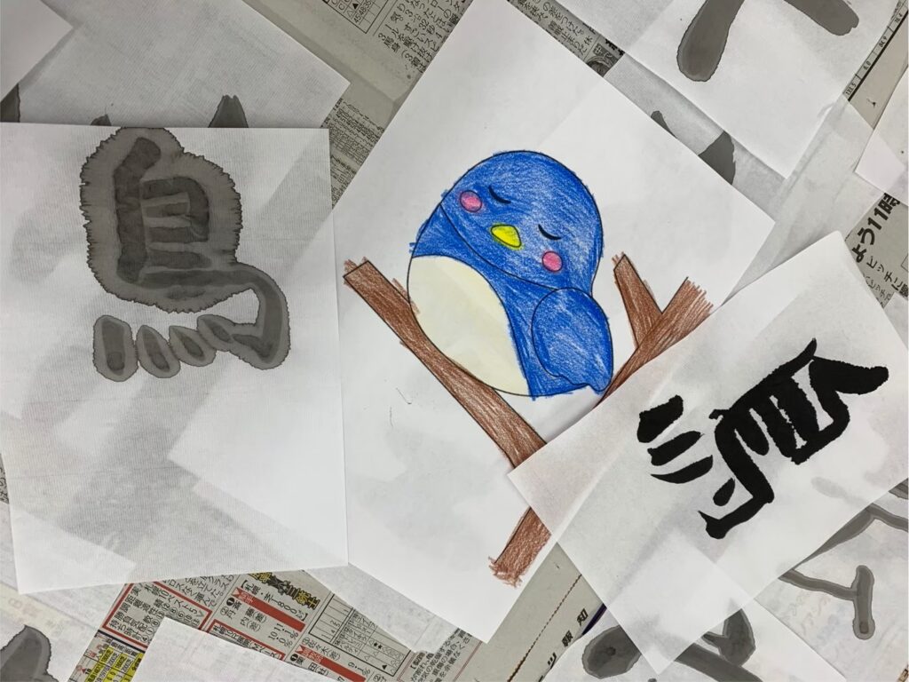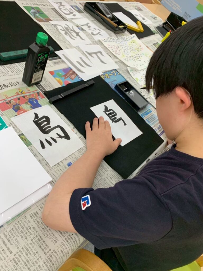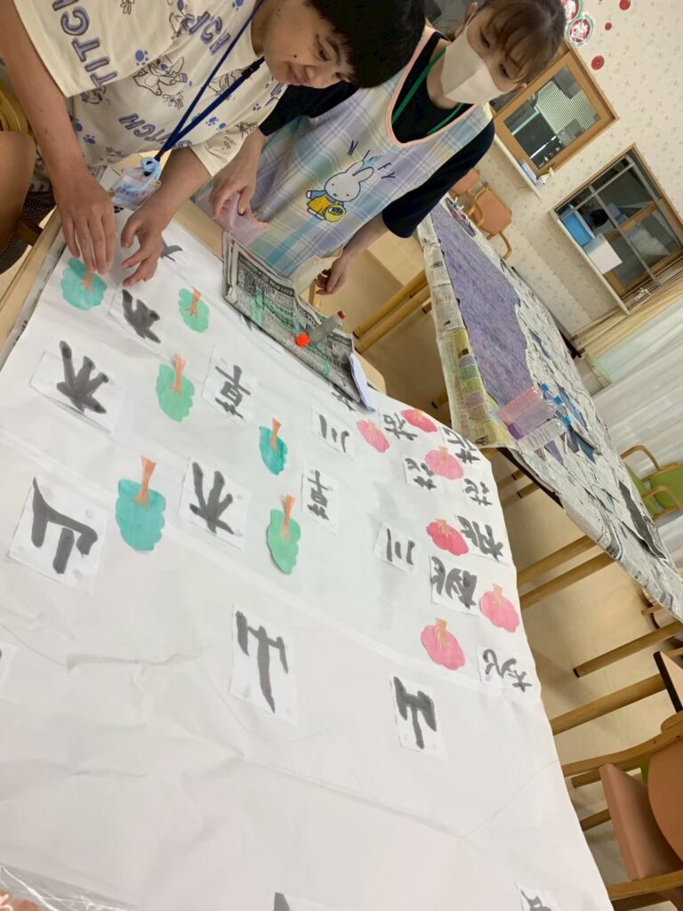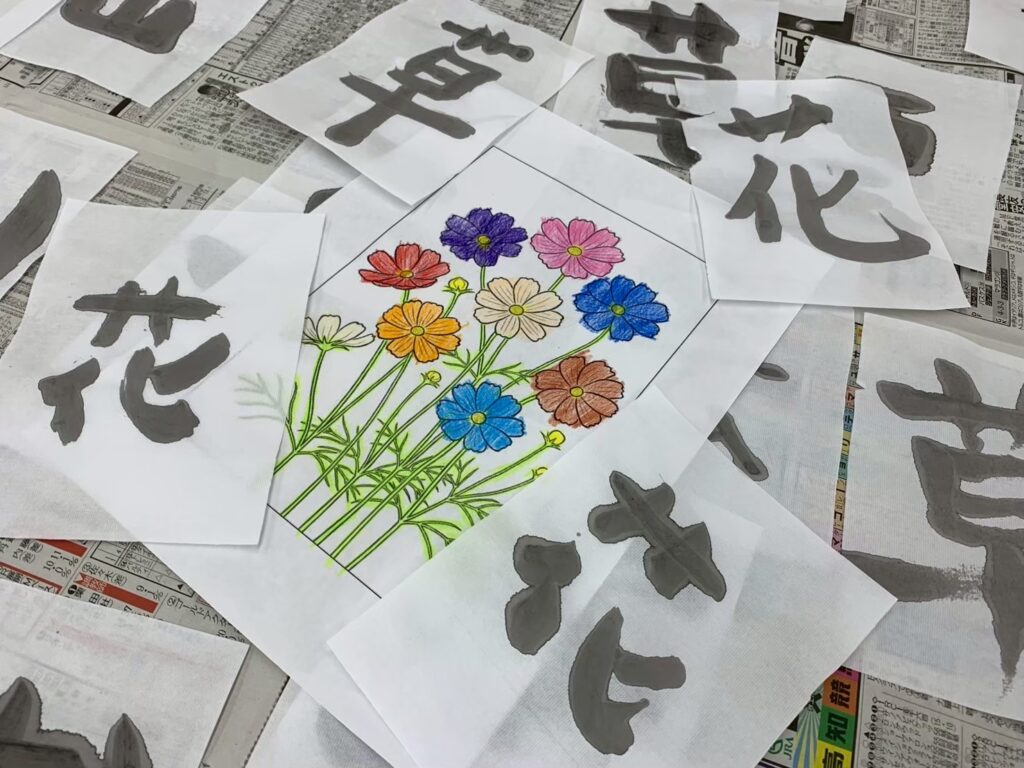 個性あふれる書道に色を組み合わせて一つの作品にしていきます
